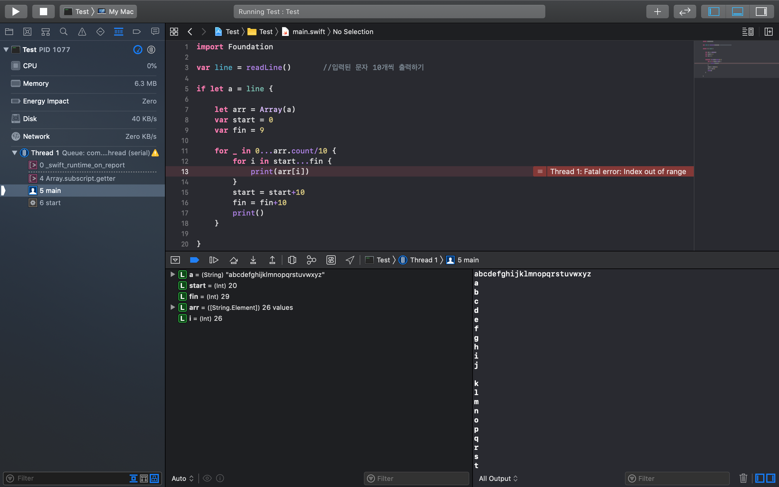 [Swift] 입력받은 문자열 잘라서 출력하기. 본문