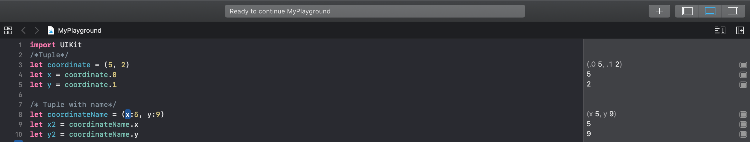 x축과 y축이므로 let coordinateName = (x:5, y:9) 라고 하였다.